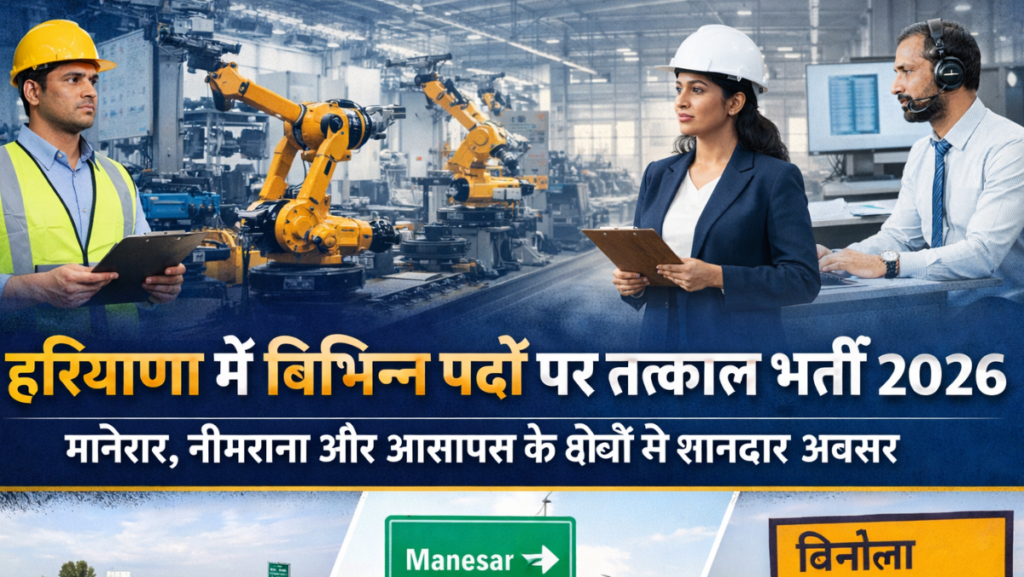 हरियाणा में विभिन्न पदों पर तत्काल भर्ती 2026 – मानेसर, नीमराना और आसपास के क्षेत्रों में शानदार अवसर