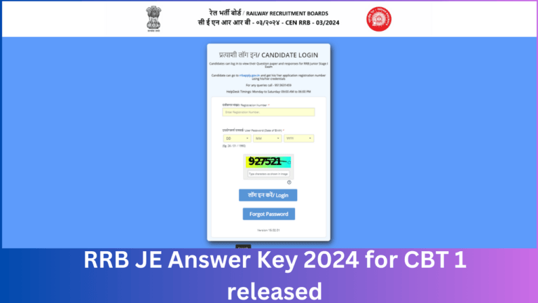 RRB JE Answer Key 2024 for CBT 1 released; file objections till December 28, direct link & details here
