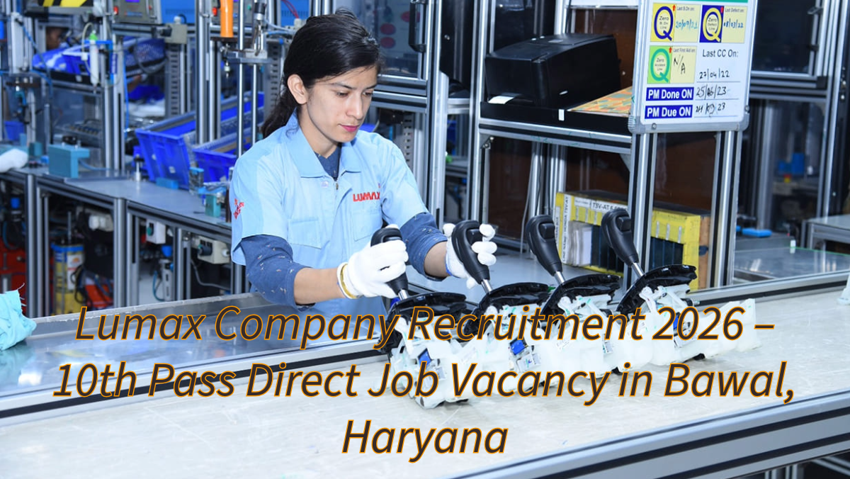 The Lumax Company Recruitment 2026 in Bawal, Haryana is a good opportunity for 10th pass candidates looking for factory jobs. With salary up to ₹23,000, free bus service, and free canteen, this job provides stable employment in the manufacturing sector.